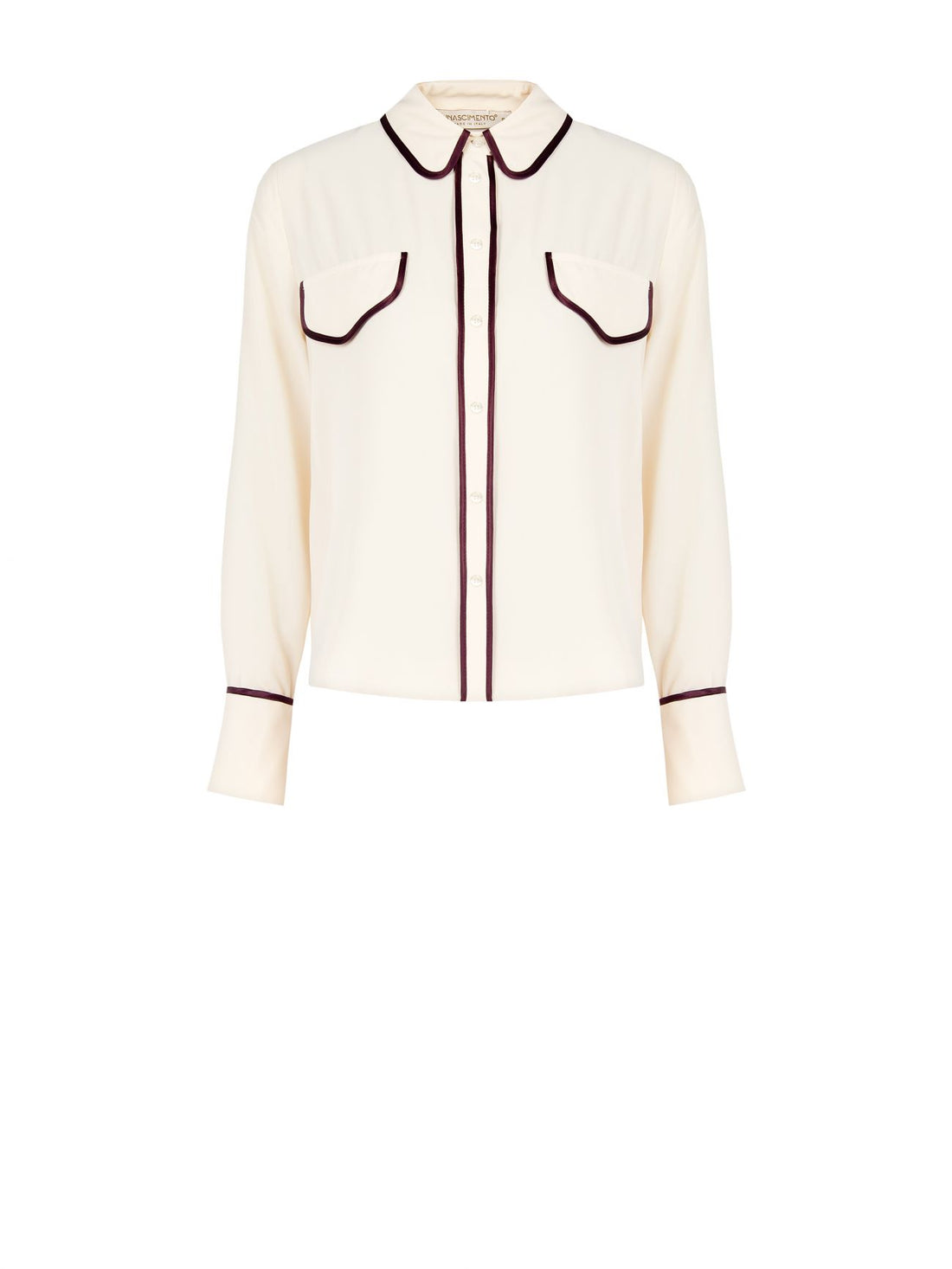 Het beige shirt met biezen is een elegant en eigentijds kledingstuk dat is ontworpen om...