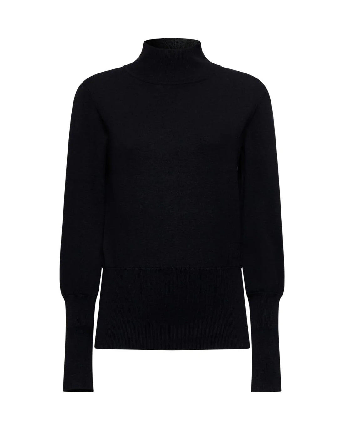 Trui met lange mouwen, hoge kraag en getailleerd silhouet. Een eenvoudig kledingstuk dat het lichaam...